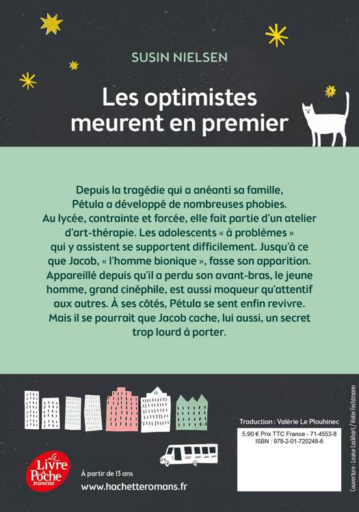 Depuis la tragédie qui a anéanti sa famille, Pétula De Wilde, seize ans, a développé de nombreuses phobies. La voilà coincée entre ses parents accablés par le chagrin et une ex-meilleure amie qui ne lui adresse plus la parole. Pessimiste, elle estime qu’une très grande prudence et une hygiène extrême lui permettront de parer à la moindre catastrophe. Mais est-ce bien réaliste ?… Au lycée, contrainte et forcée, elle fait partie d’un cours qu’elle surnomme Travaux manuels pour les fous. Les adolescents « à problèmes » qui y assistent se supportent tout juste. Jusqu’à ce que « l’Homme bionique » fasse son apparition. Le mystérieux Jacob, amputé d’un avant-bras à la suite d’un accident, passionné par le cinéma et aussi rentre-dedans que sarcastique, rejoint le groupe ; malgré ses réticences, l’adolescente a du mal à résister à son charme. Elle revit et en oublie ses phobies. Mais il se pourrait que Jacob, lui aussi, cache un secret trop lourd à porter…