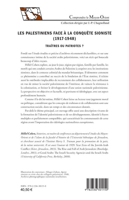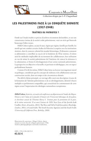 L'auteur explore, au jour le jour, région par région, famille par famille, les motifs qui ont conduit certains Arabes de Palestine à coopérer avec les institutions sionistes, dans le contexte colonial du mandat britannique. Il éclaire les méthodes de recrutement des collaborateurs, leur utilisation en vue de miner la société palestinienne de l'intérieur. Loin de tout jugement moral ou politique, il offre aussi une description vivante de la formation de l'identité palestinienne.