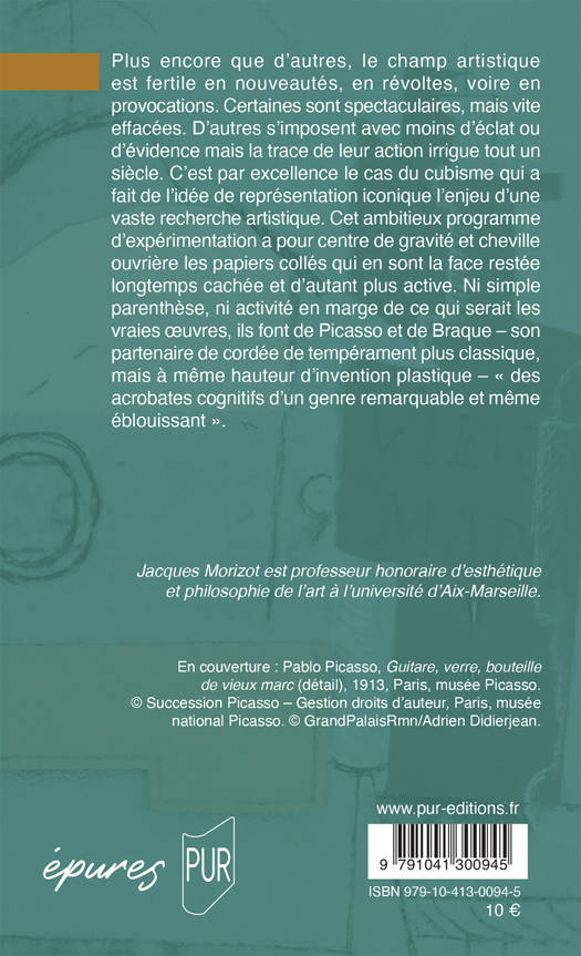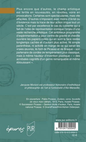 Plus encore que d’autres, le champ artistique est fertile en nouveautés, en révoltes, voire en provocations. Certaines sont spectaculaires, mais vite effacées. D’autres s’imposent avec moins d’éclat ou d’évidence mais la trace de leur action irrigue tout un siècle. C’est par excellence le cas du cubisme qui a fait de l’idée de représentation iconique l’enjeu d’une vaste recherche artistique. Cet ambitieux programme d’expérimentation a pour centre de gravité et cheville ouvrière les papiers collés qui en sont la face restée longtemps cachée et d’autant plus active. Ni simple parenthèse, ni activité en marge de ce qui serait les vraies oeuvres, ils font de Picasso et de Braque – son partenaire de cordée de tempérament plus classique, mais à même hauteur d’invention plastique – « des acrobates cognitifs d’un genre remarquable et même éblouissant ».