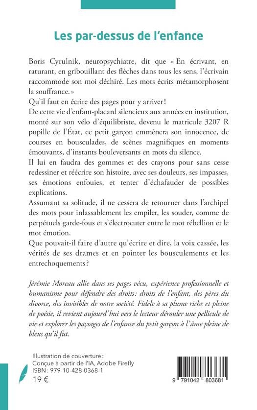 Boris Cyrulnik, neuropsychiatre, dit que En écrivant, en raturant, en gribouillant des flèches dans tous les sens, l'écrivain raccommode son moi déchiré. Les mots écrits métamorphosent la souffrance. Qu'il faut en écrire des pages pour y arriver ! De cette vie d'enfant-placard silencieux aux années en institution, monté sur son vélo d'équilibriste, devenu le matricule 3207 R pupille de l'État, ce petit garçon emmènera son innocence, de courses en bousculades, de scènes magnifiques en moments émouvants, d'instants bouleversants en mots du silence. Il lui en faudra des gommes et des crayons pour sans cesse redessiner et réécrire son histoire, avec ses douleurs, ses impasses, ses émotions enfouies, et tenter d'échafauder de possibles explications. Assumant sa solitude, il ne cessera de retourner dans l'archipel des mots pour inlassablement les empiler, les souder, comme de perpétuels garde-fous et s'électrocuter entre le mot rébellion et le mot émotion. Que pouvait-il faire d'autre qu'écrire et dire, la voix cassée, les vérités de ses drames et en pointer les bousculements et les entrechoquements ?