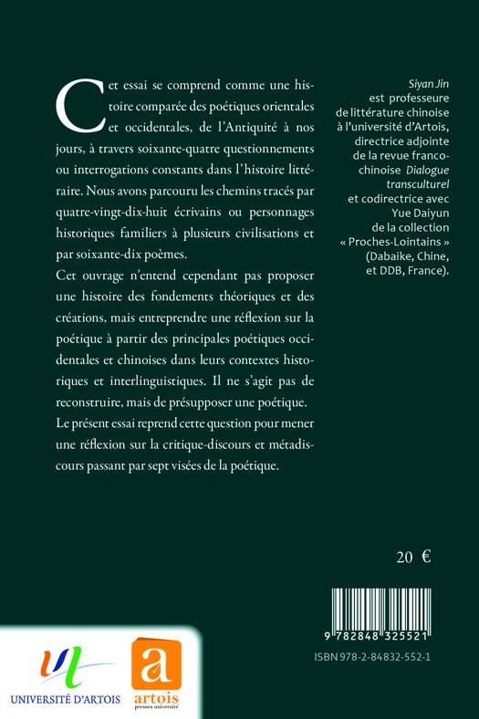 Il ne s'agit cependant pas de proposer une histoire des fondements théoriques et des créations, mais d'entreprendre une réflexion sur la poétique à partir des principales poétiques occidentales et chinoises dans leurs contextes historiques et interlinguistiques. Non pas reconstruire, mais présupposer une poétique.