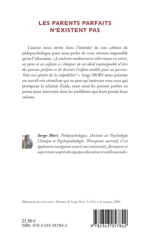 L'auteur nous invite dans l'intimité de son cabinet de pédopsychologue pour nous parler de cette mission impossible qu'est l'éducation. "Je souhaite modestement aider toutes ces mères, ces pères et ces enfants à s' éloigner de cet idéal inatteignable d' être des parents parfaits et de devenir l'enfant modèle pour ses parents. Tout ceci génère de la culpabilité !" Serge MORI nous présente un travail très stimulant qui ne peut qu'intéresser tous ceux qui pratiquent la relation d'aide, mais aussi les parents.