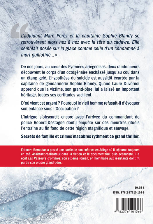 De nos jours, au cœur des Pyrénées ariégeoises, deux randonneurs découvrent le corps d'un octogénaire enchâssé jusqu'au cou dans un étang gelé. L'hypothèse du suicide est aussitôt écartée par la capitaine de gendarmerie Sophie Blandy.