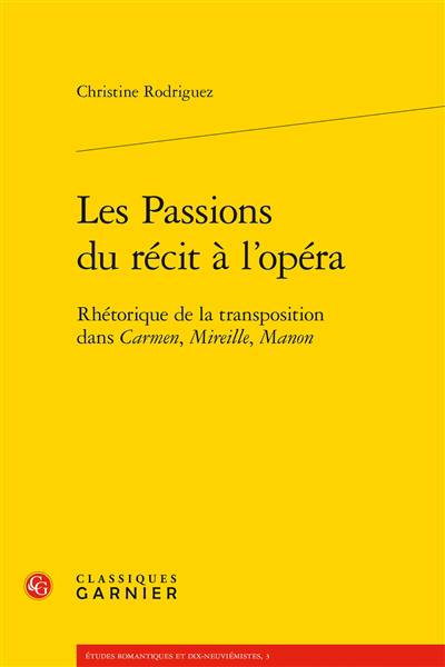 Carmen, Mireille et Manon sont trois grandes figures de la passion, répétant la même transgression, un type particulier de séduction qui appelle inexorablement l'expiation. Cet ouvrage analyse la transposition de leur histoire à l'opéra et propose un modèle de compréhension des opérations sémiologiques qui assurent cette métamorphose. Il tente de montrer que l'adaptation, pour l'opéra comme pour les autres arts, est un défi rhétorique qui, dans ce cas précis, a pour enjeu la concentration du pathos.