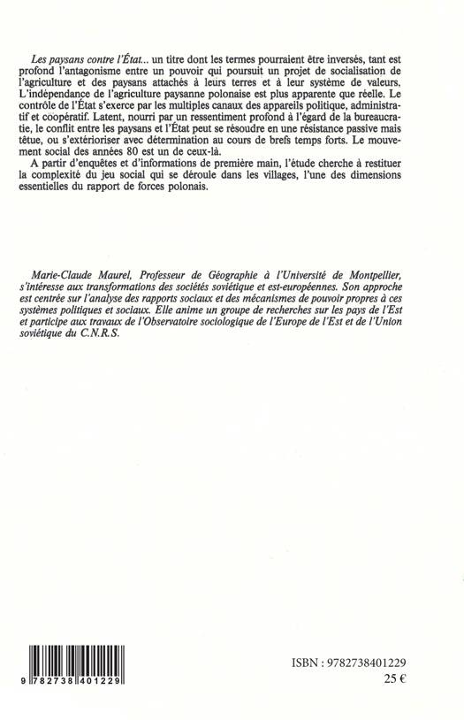 Les paysans contre l'Etat... un titre dont les termes pourraient être inversés, tant est profond l'antagonisme entre un pouvoir qui poursuit un projet de socialisation de l'agriculture et des paysans attachés à leurs terres et à leur système de valeurs. L'indépendance de l'agriculture paysanne polonaise est plus apparente que réelle. Le contrôle de l'Etat s'exerce par les multiples canaux des appareils politique, administratif et coopératif. Latent, nourri par un ressentiment profond à l'égard de la bureaucratie, le conflit entre les paysans et l'Etat peut se résoudre en une résistance passive mais têtue, ou s'extérioriser avec détermination au cours de brefs temps forts. Le mouvement social des années 80 est un de ceux-là. A partir d'enquêtes et d'informations de première main, l'étude cherche à restituer la complexité du jeu social qui se déroule dans les villages, l'une des dimensions essentielles du rapport de forces polonais.