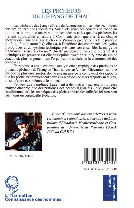 Cet ouvrage propose une analyse ethnographique des pratiques de plusieurs pêcheurs de l'étang de Thau sur une période de plusieurs années, donne une mesure de la complexité des rapports que les pêcheurs entretiennent entre eux à propos de leurs relations au milieu.