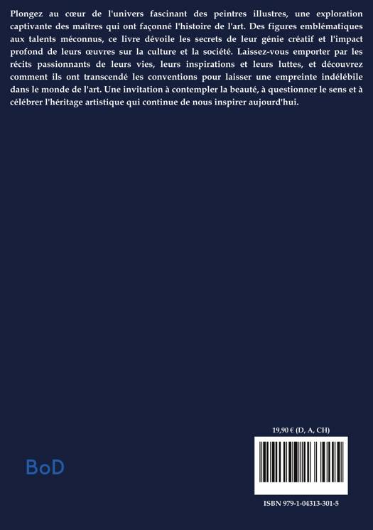 Plongez au coeur de l'univers fascinant des peintres illustres, une exploration captivante des maîtres qui ont façonné l'histoire de l'art. Des figures emblématiques aux talents méconnus, ce livre dévoile les secrets de leur génie créatif et l'impact profond de leurs oeuvres sur la culture et la société. Laissez-vous emporter par les récits passionnants de leurs vies, leurs inspirations et leurs luttes, et découvrez comment ils ont transcendé les conventions pour laisser une empreinte indélébile dans le monde de l'art. Une invitation à contempler la beauté, à questionner le sens et à célébrer l'héritage artistique qui continue de nous inspirer aujourd'hui.