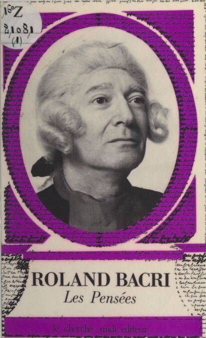Maurice Clavel l’affirme en préfaçant cet ouvrage : “Ces pensées ne sont pas seulement des petites fleurs”. Et il précise, situant Roland Bacri : “Il s’agit d’un grand moraliste”... “un salutaire antiterrorisme”. Plus loin : “Le calembour est aujourd’hui un moyen de ne pas devenir idiot. C’est un défi aux traductions des ordinateurs, aux langages de bois de tous les Politburo. Ça destructure, donc ça libère... Lecteur, tu vas rire comme vache ou baleine dans le plus noble des genres”. Amusez-vous maintenant tout en découvrant que Roland Bacri, poète bien connu des lecteurs du Canard Enchaîné, est aussi un “nouveau” Philosophe ! “Quand un homme parle à un autre qui ne le comprend pas et que celui qui parle ne comprend plus, c’est de la Métaphysique.” VOLTAIRE