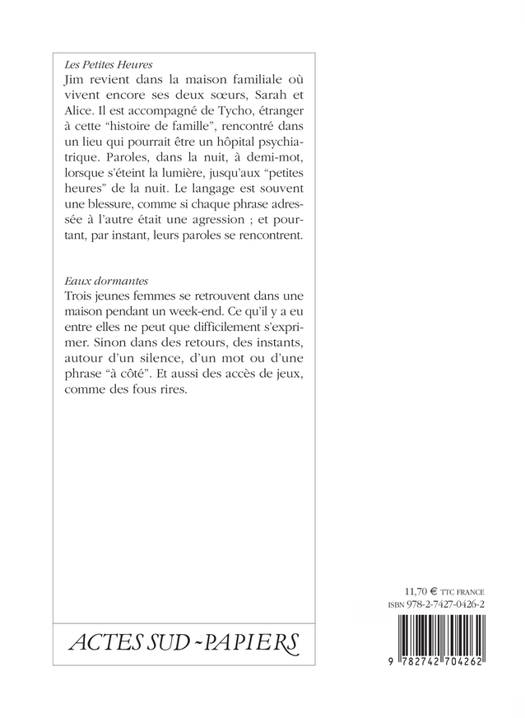 «Les Petites Heures» Jim revient dans la maison familiale où vivent encore ses deux soeurs, Sarah et Alice. Il est accompagné de Tycho, étranger à cette "histoire de famille", rencontré dans un lieu qui pourrait être un hôpital psychiatrique. Paroles, dans la nuit, à demi-mot, lorsque s'éteint la lumière, jusqu'aux "petites heures" de la nuit. Le langage est souvent une blessure, comme si chaque phrase adressée à l'autre était une agression ; et pourtant, par instant, leurs paroles se rencontrent.