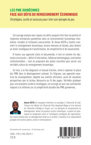 Cet ouvrage analyse avec rigueur les défis auxquels font face les petites et moyennes entreprises guinéennes dans un environnement économique mondialisé, instable et fortement concurrentiel. Dr Amara KEITA y montre comment le renseignement économique, encore méconnu en Guinée, peut devenir un levier stratégique de transformation, de compétitivité et de souveraineté. À travers une approche claire et documentée, il met en lumière les obstacles structurels - déficit d'information, faiblesse technologique, contraintes institutionnelles - tout en proposant des pistes concrètes pour ancrer une véritable culture du renseignement économique. Ce livre, à la fois diagnostic et manuel d'action, invite à repenser la place des PME dans le développement national. En filigrane, une approche novatrice du renseignement, adaptée aux réalités africaines, ouvre de nouvelles perspectives que le lecteur découvrira au fil des pages. Véritable plaidoyer pour une économie lucide et stratégique, cet ouvrage se veut une contribution majeure à la réflexion sur la compétitivité durable des PME guinéennes.