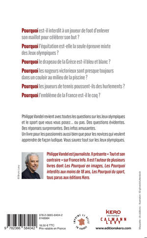 Philippe Vandel revient avec toutes les questions sur les Jeux olympiques et le sport que vous vous posez… ou pas. Des questions évidentes. Des réponses surprenantes. Des infos amusantes. Un livre pour les passionnés aussi bien que pour les novices qui veulent apprendre de façon ludique. Vous saurez tout sur les Jeux olympiques.