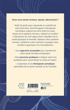 Vous vous sentez anxieux, épuisé, déconnecté ?Voilà LE guide pour reprendre le contrôle de votre bien-être. Anna Ferguson, thérapeute somatique, explore les liens entre le corps, l’esprit et le système nerveux, mettant en lumière l’importance du nerf vague dans l’équilibre de la santé physique et mentale. Apaisez votre système nerveux, améliorez votre sommeil, soulagez votre anxiété et guérissez vos traumatismes !