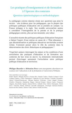 La pédagogie comme réponse située aux questions que pose le terrain: une évidence pour les pédagogues, que la plupart des politiques publiques d'éducation ont su prendre en compte. La France échappe à la règle. Son modèle universaliste amène à considérer l'homogénéité de la pensée et de la pratique pédagogique comme, plus qu'une nécessité, une valeur. L'actualité récente des politiques publiques d'éducation françaises a balayé l'espoir d'une remise en cause de l'État éducateur que décentralisation et politiques éducatives territoriales avaient initiée. Comment penser alors le rôle du contexte dans la détermination des choix didactiques et pédagogiques ? Vingt-huit auteurs interrogent les enjeux et les conditions d'une articulation des pratiques d'éducation et de formation aux contextes de leur mise en oeuvre. La dimension internationale permet d'envisager autrement l'articulation entre politique publique d'éducation et territoires.