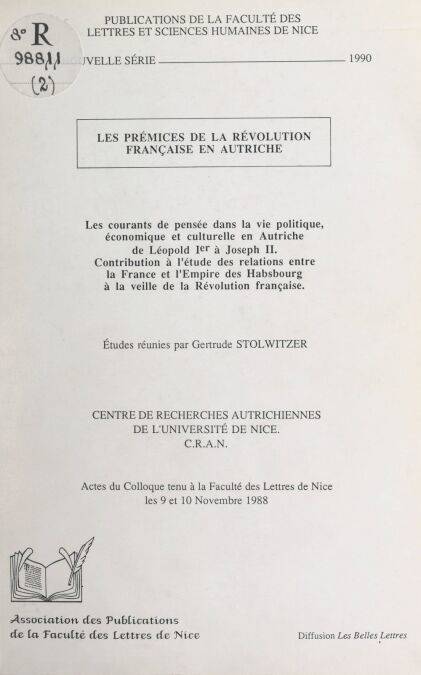 Cet ouvrage est une contribution à l'étude des relations entre la France et l'empire des Habsbourg à la veille de la Révolution française. Actes du colloque tenu à la Faculté des lettres de Nice les 9 et 10 novembre 1988