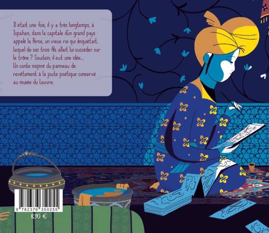 Il était une fois, il y a très longtemps, à Ispahan, dans la capitale d'un grand pays appelé la Perse, s'inquiétait un vieux roi. Lequel de ses trois fils allait lui succéder sur le trône ? Soudain, il eut une idée Un conte inspiré du Panneau de revêtement à la joute poétique conservé au musée du Louvre. Les illustrations inédites de ce livre s'accompagnent d'un petit livret pédagogique présentant les oeuvres originales qui interviennent dans le conte. LA COLLECTION « LES PETITS CONTES DU LOUVRE » Les oeuvres du Louvre ont bien des histoires à raconter ! Pour les faire vivre, le plus grand musée du monde organise depuis 2019 les ateliers de « La Boîte à Histoires », une série de contes composés par différents auteurs. Petits et grands déambulent dans les salles du musée et se laissent conter les secrets d'une oeuvre à travers un petit théâtre d'images japonais, le butaï... Un voyage qu'il est désormais possible de faire à travers la collection « Contes du Louvre ».