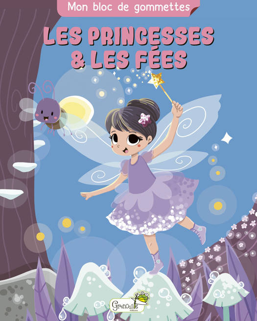 16 décors sur le thème des princesses et des fées à compléter par des gommettes, ainsi que deux pages de gommettes.