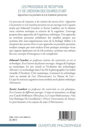 Cet ouvrage est écrit à quatre mains et porte sur la relation entre création artistique et sciences de la cognition. L'ouvrage propose deux approches de l'expérience esthétique. Une approche en troisième personne mobilisant des modèles propres aux systèmes dits auto-organisateurs issus de la biologie dédiée à la réception des uvres d'art et une approche en première personne rendant compte par auto-analyse d'une pratique artistique vécue qui s'appuie également sur de tels systèmes, systèmes eux-mêmes liés aux concepts d'émergence et de complexité.
