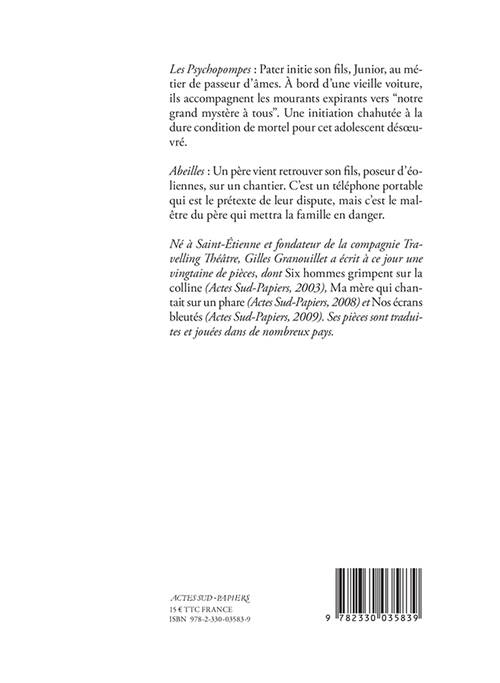 «Les Psychopompes» : Pater initie son fils, Junior, au métier de passeur d'âmes. A bord d'une vieille voiture, ils accompagnent les mourant expirants vers "notre grand mystère à tous". Une initiation chahutée à la dure condition de mortel pour cet adolescent désoeuvré.
