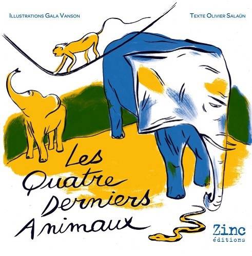 Les hommes ont fini par anéantir les animaux. Il ne reste plus qu'un boa, un ouistiti, un petit éléphant et un gros éléphant. Mais que peuvent-ils faire ensemble ? Se promener ? Philosopher ? Se disputer ? Trouver un nouveau chemin ? Les quatre derniers animaux est une fable tragi-comique écrite à la manière d'une petite pièce de théâtre. Pas de morale, pas de conclusion ni de solution sur le destin du monde, mais sans doute l'envie d'y réfléchir.