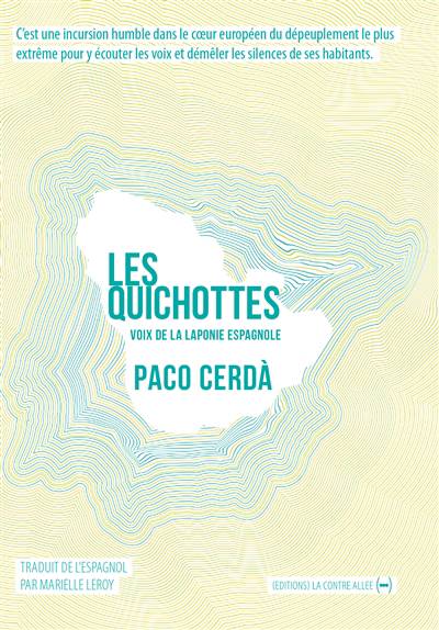 Les Quichottes, c’est le récit d’un voyage de 2 500 kilomètres à travers les 65 000 km2 du plus grand désert démographique d’ Europe – après la région arctique de Scandinavie –, qui s’étend à travers les provinces de Guadalajara, Teruel, La Rioja, Burgos, Valence, Cuenca, Saragosse, Soria, Segovie et Castellón, et où l’on recense 1 355 municipalités. Paco Cerdà, journaliste-écrivain, nous entraîne sur les routes impraticables de ce territoire froid et montagneux, au sud-est de Madrid, que l’on surnomme aussi « Laponie du Sud » ou « Laponie espagnole », parce que, comme en Laponie, moins de huit habitants au kilomètre carré y vivent. Dans toute l’Europe, il n’y a pas d’endroit aussi extrême et vide. Une région abandonnée des pouvoirs publics, où 1 % de la population occupe 13 % du territoire. Loin de l’idéalisation d’un monde rural bucolique, Paco Cerdà relate le manque d’infrastructures, de perspectives, l’absence d’écoles, de soins, de structures culturelles ou sportives. Enfin, Les Quichottes offre un regard sur la difficulté de s’ inscrire, aujourd’hui, pour bon nombre d’entre nous, dans un monde globalisé.
