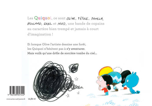 Les Quiquoi, ce sont Olive, Pétole, Pamela, Boulard, Raoul et Mixo, une bande de copains au caractère bien trempé et à l'imagination sans limites ! Dans ce nouvel épisode, Olive l'artiste dessine une forêt. Les Quiquoi s'y aventurent et rencontrent une petite sorcière tombée du ciel parce qu'elle a perdu son balai... Une histoire pleine d'humour et de magie.