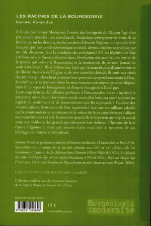 À l'aube des Temps Modernes, l'avenir des bourgeois du Moyen Âge n'est pas encore tranché : ces marchands, financiers, entrepreneurs vont-ils se fondre parmi les dominants des sociétés d'Ancien Régime, ou vont-ils faire accepter que leur poids économique et social, devenu majeur, se traduise par un rôle dirigeant dans la conduite des politiques ? Le sentiment de leur supériorité face aux travailleurs salariés s'allie aux ressentiments et à la frustration quand ils se heurtent au mépris social des nobles qui jalousent leur richesse. L'histoire de leur future hégémonie se nourrira de ces héritages contrastés.