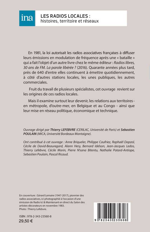 En 1981, la loi autorisait les radios associatives françaises à diffuser leurs émissions en modulation de fréquence après une « bataille ». Quarante années plus tard, près de 640 d’entre elles continuent à émettre quotidiennement, à côté d’autres stations locales, les unes publiques, les autres commerciales. Fruit du travail de plusieurs spécialistes, cet ouvrage revient sur les origines de ces radios locales. Mais il examine surtout leur devenir, les relations aux territoires - en métropole, d’outre-mer, en Belgique et au Congo - ainsi que leur mise en réseau politique, économique et technique.