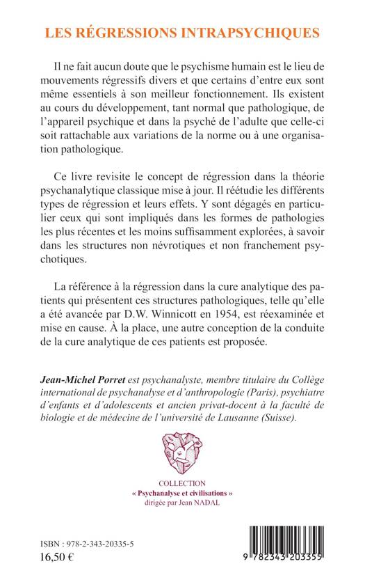 Il ne fait aucun doute que le psychisme humain est le lieu de mouvements régressifs divers et que certains d'entre eux sont même essentiels à son meilleur fonctionnement. Ils existent au cours du développement, tant normal que pathologique, de l'appareil psychique et dans la psyché de l'adulte que celle-ci soit rattachable aux variations de la norme ou à une organisation pathologique. Ce livre revisite le concept de régression dans la théorie psychanalytique classique mise à jour.