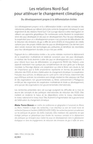 Le "développement propre" et la "déforestation évitée" sont des concepts et des mécanismes politiques qui relèvent de la lutte contre le changement climatique. En quoi engendrent-ils des relations Nord-Sud ? Pour répondre, l'ouvrage utilise une approche géopolitique. De nombreuses cartes illustrent la coopération entre pays développés et pays en développement. Les recherches présentées soulignent les difficultés de la mise en oeuvre des concepts et des politiques internationales de réduction des émissions de gaz à effet de serre (EGES) et mettent en évidence le hiatus et les déperditions entre le niveau international, national et local.