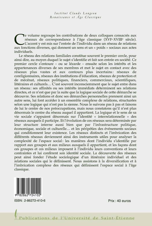 Contributions de deux colloques consacrés aux réseaux de correspondance à l'âge classique. L'accent y est mis sur l'entrée de l'individu dans un réseau de relations aux fonctions diverses, qui donnent un sens et un poids sociaux aux actes individuels. Permet de les envisager dans l'évolution de la structure des clientèles de l'Ancien Régime.