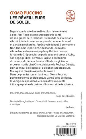 Depuis que le soleil ne se lève plus, la vie s’éteint à petit feu. Rosie craint surtout pour la santé de son grand-père Edmond. Du haut de ses treize ans, elle décide de trouver un moyen de ramener le soleil et part à sa recherche. Après avoir échoué à convaincre Noé, l’homme le plus riche du monde, de l’aider, elle se lance dans une épopée qui lui fera croiser la route de Crépuscule, un paria au grand cœur, Aube, son ange gardien, Vénus, la plus belle femme du monde, le fameux Famos, Ilra la magicienne et son mari le Chat Cinno, Momo le pêcheur, un sonneur de cloches et des éléphants footballeurs. Mais qui va réussir à réveiller le soleil ? Dans ce premier roman lumineux, Oxmo Puccino pointe l’urgence écologique, la vanité de la célébrité, le vertige des passions, et nous offre une quête initiatique pleine de poésie, d’humour et de tendresse.