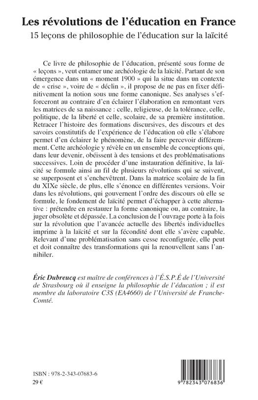 Ce livre de philosophie de l'éducation, présenté sous forme de « leçons », veut entamer une archéologie de la laïcité. Partant de son émergence dans un « moment 1900 » qui la situe dans un contexte de « crise », voire de « déclin », il propose de ne pas en fixer définitivement la notion sous une forme canonique. Ses analyses s'efforceront au contraire d'en éclairer l'élaboration en remontant vers les matrices de sa naissance : celle, religieuse, de la tolérance, celle, politique, de la liberté et celle, scolaire, de sa première institution. Loin de procéder d'une instauration définitive, la laïcité se formule et s'énonce en différentes versions.