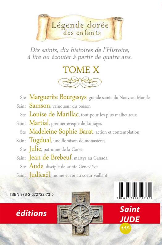 ARGUMENTAIRE Nous avons besoin de saints qui osent porter un regard de foi sur toutes choses, qui osent s'éclairer à la lumière de Dieu. La vie incroyable de dix grands saints qui ont éclairé l'histoire de notre pays la France. Découvrez dans ce tome : Marguerite Bourgeoys, Samson, Louise de Marillac, Martial, Madeleine-Sophie Barat, Tugdual, Julie, Jean de Brébeuf, Aude, Judicael.