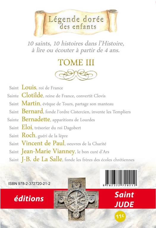Saint Louis, roi de France Sainte Clotilde, reine de France, convertit Clovis Saint Martin, évêque de Tours, partage son manteau Saint Bernard, fonde les Cisterciens, Invente les Templiers Sainte Bernadette, apparitions de Lourdes Saint Eloi, trésorier du roi Dagobert Saint Roch, guérit de la lèpre Saint Vincent de Paul, oeuvres de la Charité Saint Jean-Marie Vianney, le bon curé d'Ars Saint Jean-Baptiste de la Salle, fonde les écoles chrétiennes