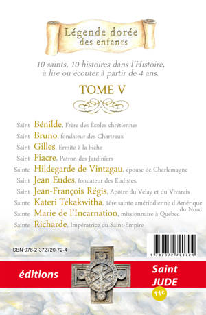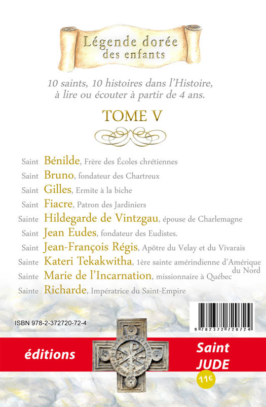 Quand l'histoire de France se confondait avec celle de ses Saints : 10 histoires à lire le soir... Les actions civilisatrices et bénéfiques des saints, fondées sur l'Evangile, ont énormément fait avancer l'humanité. Pour celui qui scrute un peu l'histoire profonde, toutes nos sociétés modernes reposent, en grande partie, sur ces bases salvatrices. Ceci malgré la décadence actuelle qui tente de détruire la pensée chrétienne. C'est pourquoi seuls, les saints méritent d'être honorés. D'ailleurs, seuls les saints sont capables de faire des miracles ! 5e tome : Saint Bénilde, Frère des Écoles chrétiennes Saint Bruno, fondateur des Chartreux Saint Gilles, Ermite à la biche Saint Fiacre, Patron des Jardiniers Sainte Hildegarde de Vintzgau, épouse de Charlemagne Saint Jean Eudes, fondateur des Eudistes. Saint Jean-François Régis, Apôtre du Velay et du Vivarais Sainte Kateri Tekakwitha, 1ère sainte amérindienne d'Amérique Sainte Marie de l'Incarnation, missionnaire à Québec Sainte Richarde, Impératrice du Saint-Empire Une histoire à lire avant de s'endormir Un texte adapté aux premières lectures (6-7 ans), qui peut être lu aux plus petits. Des dessins intérieurs à colorier. Mauricette Vial Andru est une historienne qui a beaucoup travaillé pour les enfants.