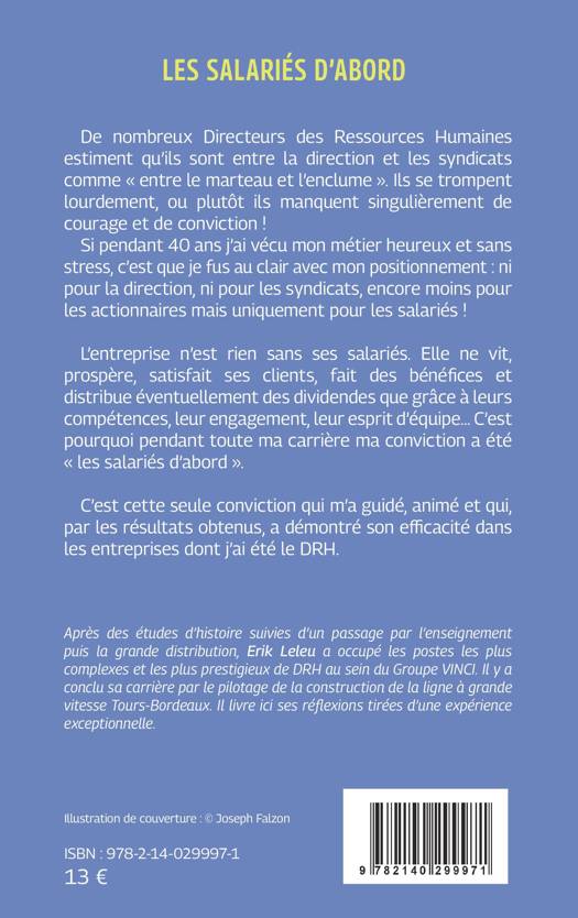 De nombreux Directeurs des Ressources Humaines estiment qu'ils sont entre la direction et les syndicats comme entre le marteau et l'enclume . Ils se trompent lourdement, ou plutôt ils manquent singulièrement de courage et de conviction ! Si pendant 40 ans j'ai vécu mon métier heureux et sans stress, c'est que je fus au clair avec mon positionnement: ni pour la direction, ni pour les syndicats, encore moins pour les actionnaires mais uniquement pour les salariés ! L'entreprise n'est rien sans ses salariés. Elle ne vit, prospère, satisfait ses clients, fait des bénéfices et distribue éventuellement des dividendes que grâce à leurs compétences, leur engagement, leur esprit d'équipe... C'est pourquoi pendant toute ma carrière ma conviction a été les salariés d'abord . C'est cette seule conviction qui m'a guidé, animé et qui, par les résultats obtenus, a démontré son efficacité dans les entreprises dont j'ai été le DRH.