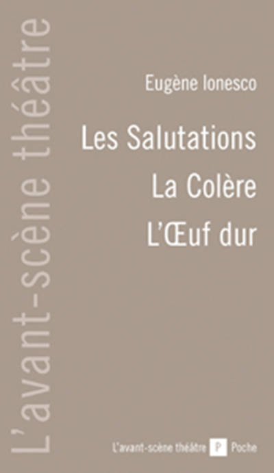 Trois messieurs sur une scène se saluent interminablement, chacun répondant aux politesses des autres par une litanie d’adverbes composés de toutes pièces. Les spectateurs de cet échange verbal extravagant commencent à s’interroger… SUIVI DE LA COLÈRE et L'ŒUF DUR - scénarios de films.