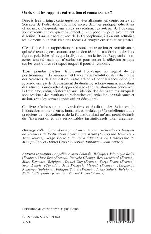Quels sont les rapports entre action et connaissance ? Depuis leur origine, cette question vive alimente les controverses en Sciences de l'éducation, discipline ancrée dans les pratiques éducatives et sociales. Cinquante ans après sa création, les auteurs de l'ouvrage sont revenus sur ce questionnement qui se pose toujours avec autant d'acuité. Dans le cadre ouvert de la francophonie, ils en ont actualisé les éléments du débat avec des focales d'analyse croisées et originales.