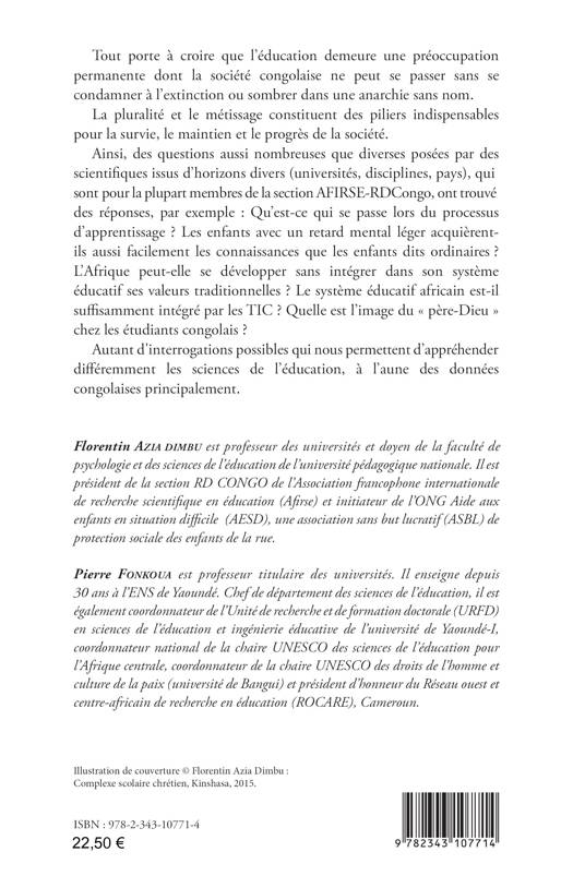 La pluralité et le métissage constituent des piliers indispensables pour la survie, le maintien et le progrès de la société. Qu'est-ce qui se passe lors du processus d'apprentissage ? Les enfants avec un retard mental léger acquièrent-ils aussi facilement les connaissances que les enfants dits ordinaires ? L'Afrique peut-elle se développer sans intégrer dans son système éducatif ses valeurs traditionnelles ? Le système éducatif africain est-il suffisamment intégré par les TIC ? Ces interrogations permettront d'appréhender les sciences de l'éducation, à l'aune des données congolaises principalement.