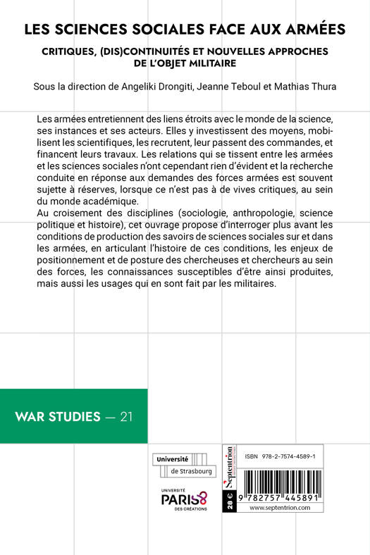 Quels rapports entretiennent les sciences sociales avec les armées ? La recherche conduite en réponse aux demandes des forces armées suscite depuis longtemps des critiques au sein du monde académique, sans pour autant faire l’objet d’un examen approfondi. C’est ce que propose cet ouvrage, par le croisement des approches disciplinaires et par une réflexion à la fois historique, méthodologique et empirique sur l’objet armée.