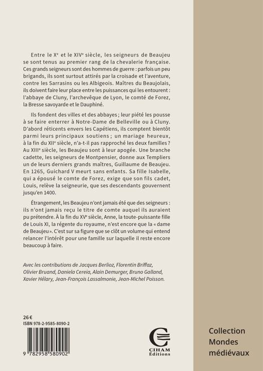 Étrangement, les Beaujeu n'ont jamais été que des seigneurs : ils n'ont jamais reçu le titre de comte auquel ils auraient pu prétendre. À la fin du XVe siècle, Anne, la toute-puissante fille de Louis XI, la régente du royaume, n'est encore que la « dame de Beaujeu ». C'est sur sa figure que se clôt un volume qui entend relancer l'intérêt pour une famille sur laquelle il reste encore beaucoup à faire.