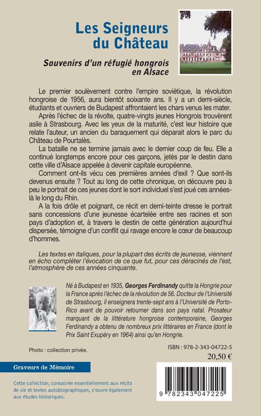 Le premier soulèvement contre l'empire soviétique, la révolution hongroise de 1956, aura bientôt 60 ans. Après l'échec de la révolte, quatre-vingts jeunes Hongrois trouvèrent asile à Strasbourg. Avec les yeux de la maturité, c'est leur histoire que relate l'auteur, un ancien du Château de Pourtalès. Comment ont-ils vécu ces premières années d'exil ? Que sont-ils devenus ? Tout au long de cette chronique, on découvre peu à peu le portrait de ces jeunes dont le sort s'est joué ces années-là le long du Rhin.