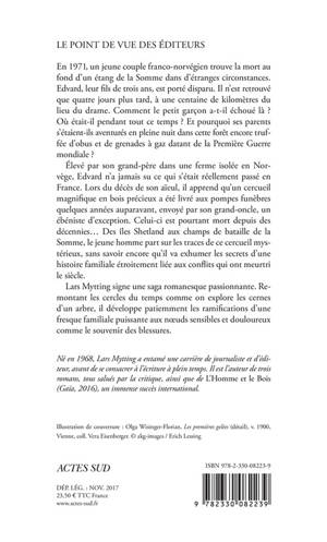 Élevé par son grand-père dans une ferme isolée en Norvège, Edvard n'a jamais su ce qui s'était réellement passé en France. Lors du décès de son aïeul, il apprend qu'un cercueil magnifique en bois précieux a été livré aux pompes funèbres quelques années auparavant, envoyé par son grand-oncle, un ébéniste d'exception. Celui-ci est pourtant mort depuis des décennies... Des îles Shetland aux champs de bataille de la Somme, le jeune homme part sur les traces de ce cercueil mystérieux, sans savoir encore qu'il va exhumer les secrets d'une histoire familiale étroitement liée aux conflits qui ont meurtri le siècle.