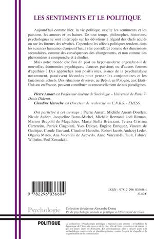 La vie politique suscite les sentiments et les passions, les amours et les haines. De tout temps, philosophes, historiens, psychologues se sont interrogés sur les dévotions à l'égard des chefs adulés ou sur les fureurs des révoltés. Cependant les affects politiques tendent, dans les sciences humaines d'aujourd'hui, à être considérés comme des dimensions secondaires, comme des conséquences des changements, et non comme des phénomènes à comprendre et à étudier.