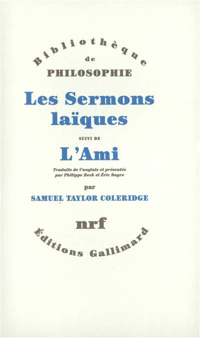 Avec la Biographia Literaria, les proses des Sermons laïques et de L'Ami (écrites de 1816 à 1818) forment l'ensemble théorique le plus abouti dans l'oeuvre de Samuel Taylor Coleridge (1772-1834), et le plus vaste ensemble théorique du "romantisme anglais". Il était jusqu'ici presque inconnu et non traduit en France. À défaut de constituer un système clos, Coleridge confronte patiemment les enjeux et les domaines classiques de la philosophie (métaphysique, morale et politique) à la vérité de son époque. L'époque signe en effet pour lui l'échec de la philosophie des Lumières. À cette dernière, et à la déchirante destruction de l'idéal révolutionnaire, il oppose la pratique d'un nouvel idéalisme platonicien, un idéalisme "anglais" qui s'efforcerait de n'oublier ni le monde et ses pratiques, ni la religion comme force régulatrice du monde. Mais Coleridge a aussi lu les "romantiques allemands", Fichte, Schelling, Hegel. Il y a puisé la conscience d'une fin de l'art religieux. À mesure qu'il construit son idéalisme, Coleridge rénove la conception de l'art, et l'idée de l'écriture. Il veut rendre celle-ci encyclopédique en un sens nouveau, c'est-à-dire "historique", ou plutôt "historiante, créatrice d'époque". Les essais traduits ici élaborent le fameux concept d'"imagination tautégorique", qui était censé renouer le lien proprement "poétique" de l'histoire et du mythe, et refaire un moyen terme absolu entre l'intelligible et le sensible (le théologique et le politique, l'éternel et l'historique).