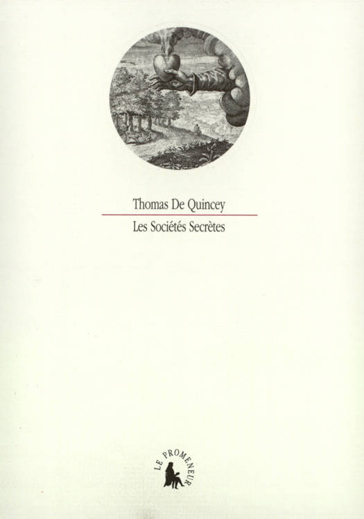 Publié en 1847 et traduit en français pour la première fois, l'essai sur les sociétés secrètes reprend un thème cher à Thomas De Quincey : celui d'un savoir caché, d'un mystère se transmettant à travers les siècles, de génération en génération, évident et pourtant invisible. À la manière des Confessions d'un mangeur d'opium et De l'assassinat considéré comme un des beaux-arts, l'approche de ce mystère se fait de digressions en apartés, de considérations annexes en divagations sinueuses : considérant aussi bien les initiés d'Éleusis que les francs-maçons, De Quincey s'attarde esentiellement sur la secte antique des esséniens, prétexte à une interrogation sur le secret, la traîtrise, la fidélité à soi-même, la falsification et le soupçon. Fidèle à sa démarche, et à quelques-uns de ses préjugés les mieux arrêtés, De Quincey poursuit ici sa quête d'une origine impossible et mythique, lieu d'une vérité ultime dont on sait qu'elle sera pour toujours insaisissable.