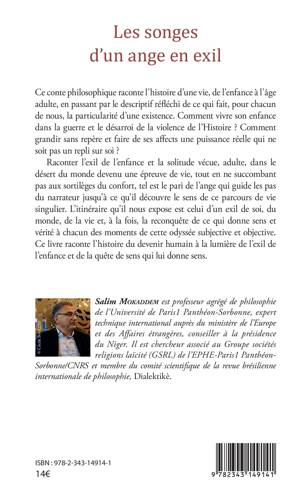 Raconter l'exil de l'enfance et la solitude vécue, adulte, dans le désert du monde devenu une épreuve de vie, tout en ne succombant pas aux sortilèges du confort, tel est le pari de l'ange qui guide les pas du narrateur jusqu'à ce qu'il découvre le sens de ce parcours de vie singulier. L'itinéraire qu'il nous expose est celui d'un exil de soi, du monde, de la vie et, à la fois, la reconquête de ce qui donne sens et vérité à chacun des moments de cette odyssée subjective et objective.