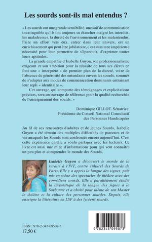 Au fil de ses rencontres d'adultes et de jeunes Sourds, Isabelle Guyon a été témoin des multiples difficultés de parcours et de vie auxquels les Sourds sont confrontés encore aujourd'hui; C'est cette expérience qu'elle a voulu partager avec les lecteurs. Ce livre est aussi une mine d'informations pour qui veut connaître un peu mieux le monde des Sourds.