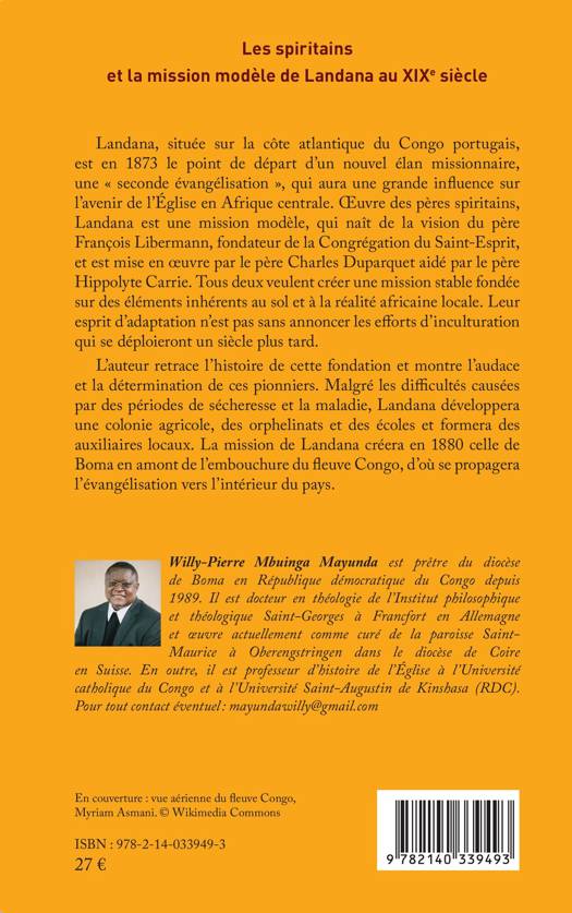 LLandana, située sur la côte atlantique du Congo portugais, est en 1873 le point de départ d'un nouvel élan missionnaire, une seconde évangélisation, qui aura une grande influence sur l'avenir de l'Église en Afrique centrale. OEuvre des pères spiritains, Landana est une mission modèle, fondée sur des éléments inhérents au sol et à la réalité africaine locale. L'auteur retrace l'histoire de cette fondation et montre l'audace et la détermination de ces pionniers. Malgré les difficultés causées par des périodes de sécheresse et la maladie, Landana développera une colonie agricole, des orphelinats et des écoles et formera des auxiliaires locaux. La mission de Landana créera en 1880 celle de Boma en amont de l'embouchure du fleuve Congo, d'où se propagera l'évangélisation vers l'intérieur du pays.