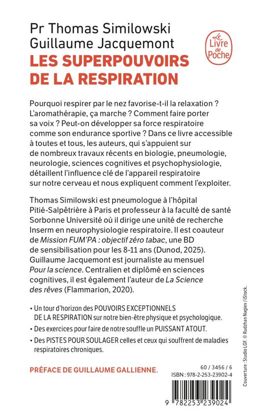 Pourquoi respirer par le nez favorise-t-il la relaxation ? L’aromathérapie, ça marche ? Comment faire porter sa voix ? Peut-on développer sa force respiratoire comme son endurance sportive ? Dans ce livre accessible à tous, les auteurs, qui s’appuient sur de nombreux travaux récents en biologie, pneumologie, neurologie, sciences cognitives et psychophysiologie, détaillent notamment l’influence clé de l’appareil respiratoire sur notre cerveau.